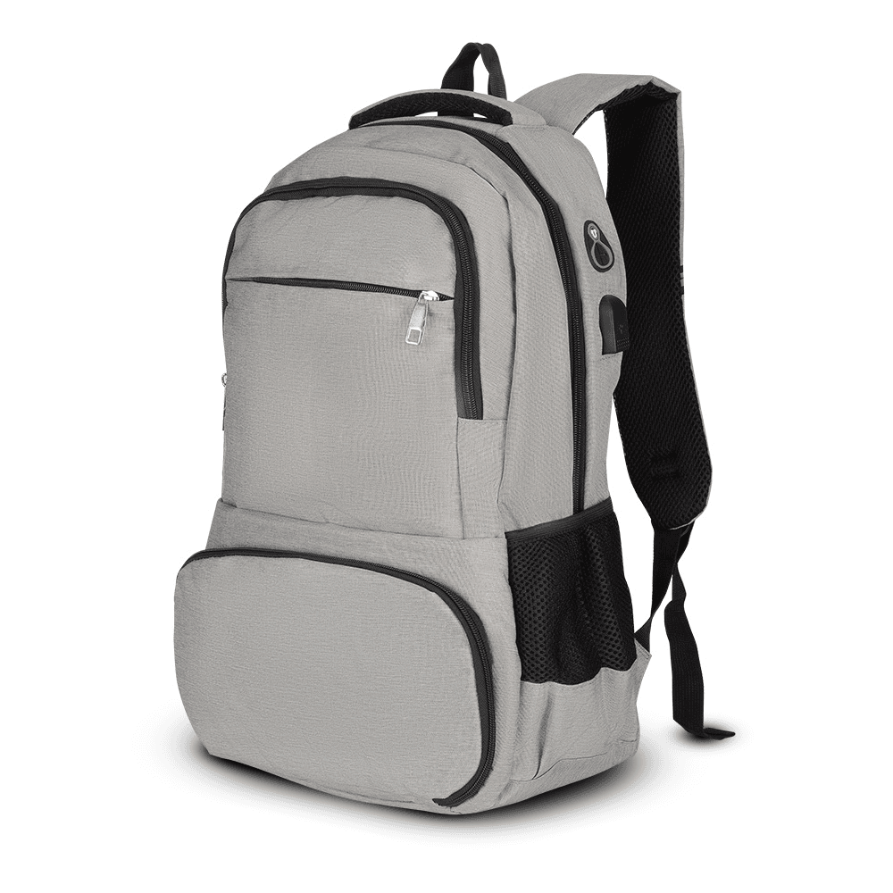 Mochila para notebook em tecido RPET 300D e interior de 210D com compartimento térmico.