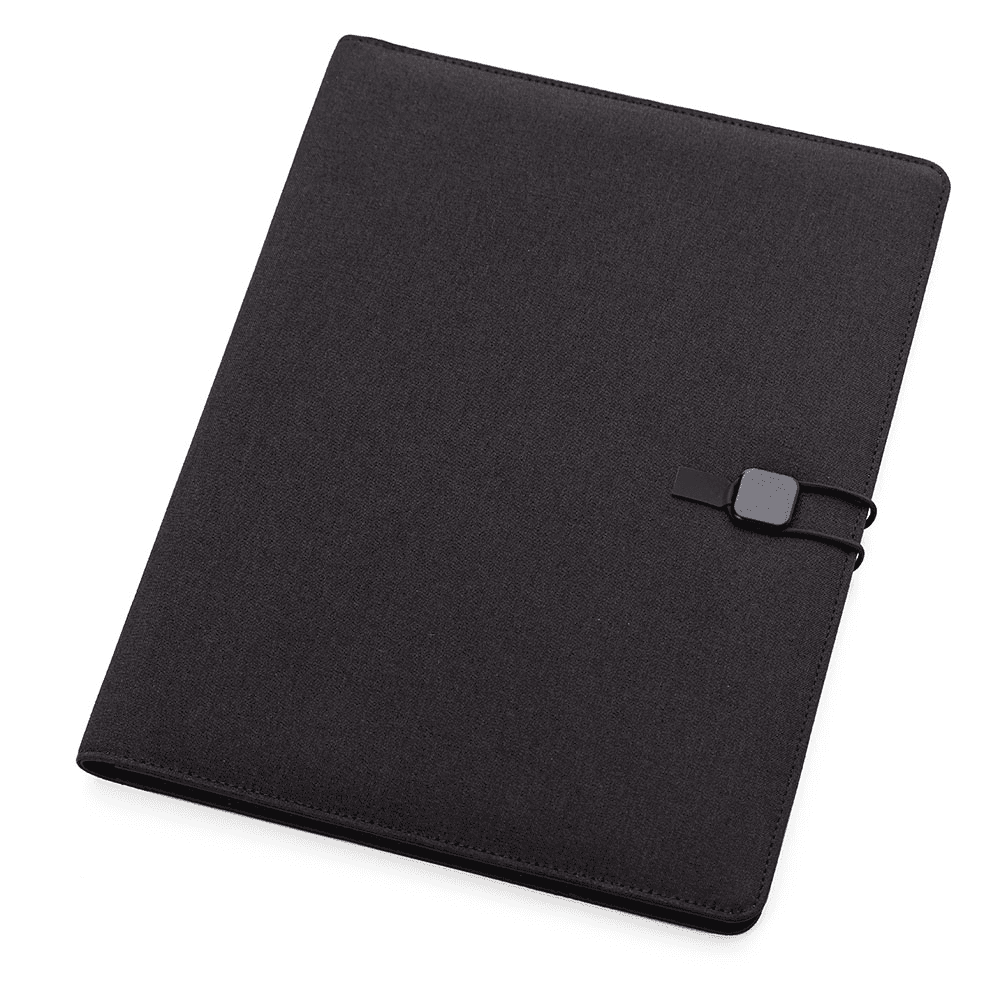 Pasta executiva com capa almofadada em tecido poliéster, contendo:
