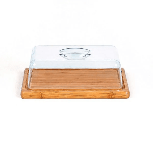 Porta Frios/Manteiga em Bambu/Poliestireno. Acompanha tampa em Poliestireno.