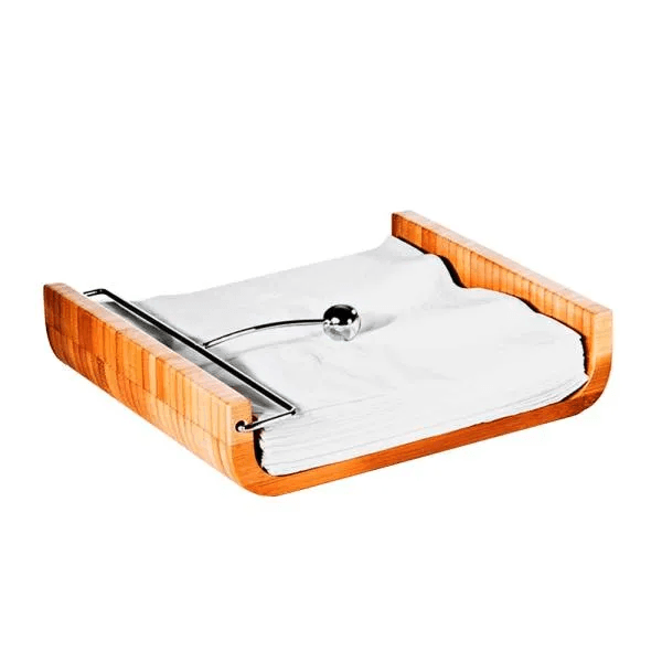 Porta-guardanapos em bambu. Conta com uma esfera em metal cromado, para segurar os guardanapos.
