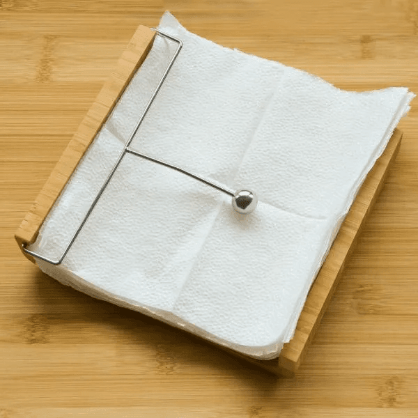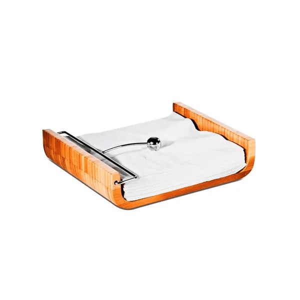 Porta-guardanapos em bambu. Conta com uma esfera em metal cromado, para segurar os guardanapos.