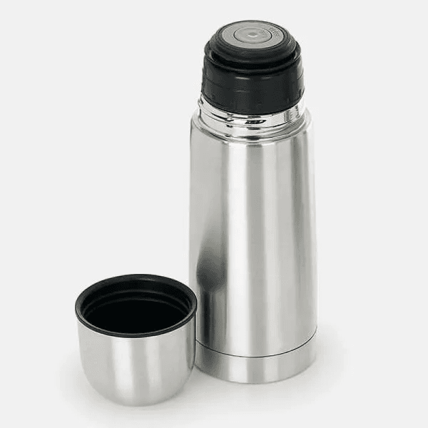 Confeccionado em aço inox escovado com tampa em polipropileno rosqueável, botão fast click para abrir (open) e fechar (close) localizada na parte superior e anel em silicone para vedação. Mantém por mais tempo a temperatura de bebidas quentes ou geladas.