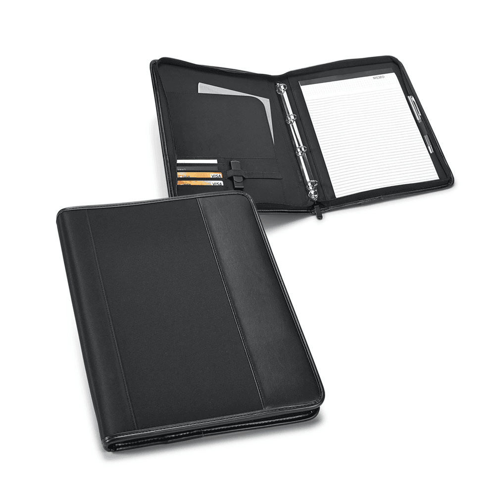 92058 CHRISTIE. Pasta A4 em c. sintético e microfibra com 4 argolas e bloco de 40 páginas pautadas