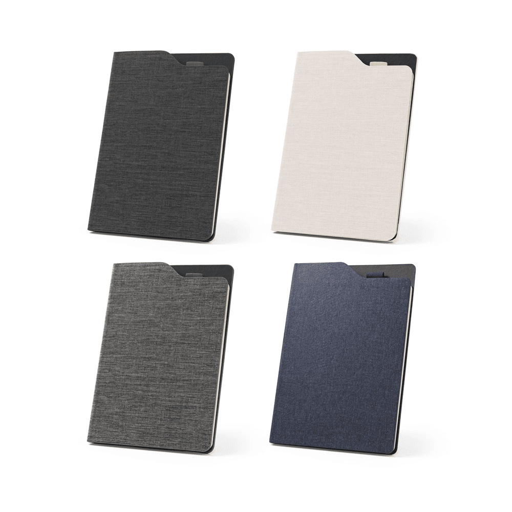 93586 LOBATO. Caderno A5 de capa dura em tecido PET 100% reciclado com 160 páginas pautadas recicladas