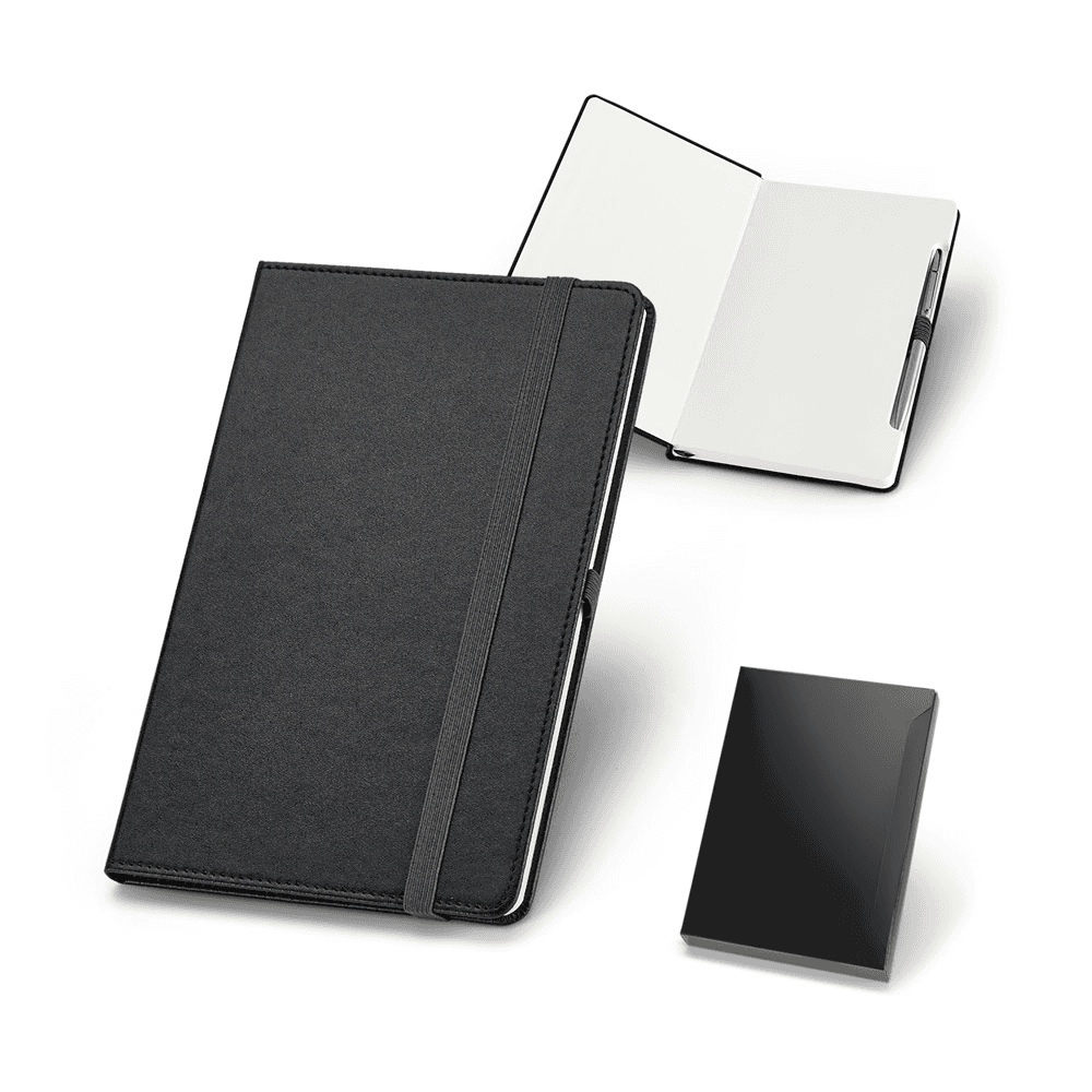 93499 GULLAR. Kit de caderno A5 e esferográfica em cartão e alumínio