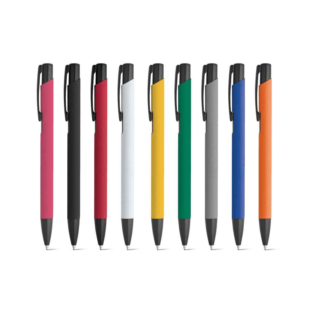 51140 POPPINS. Esferográfica em alumínio com corpo colorido e escrita em preto