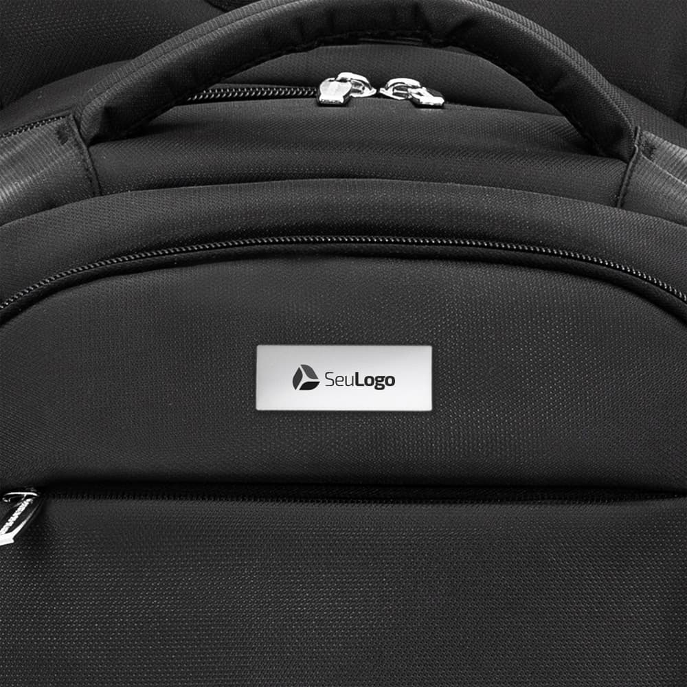Mochila de nylon 30 litros com quatro compartimentos, sendo o principal com bolso para notebook 15,6. A mochila possui bolsos laterais em malha, duas alças de mãos e área costada com revestimento espumado.