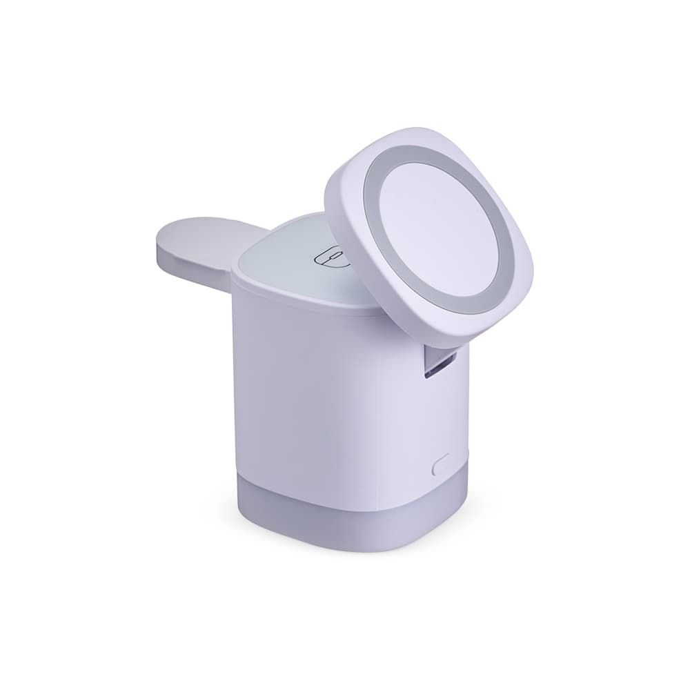Carregador 3 em 1? A nossa base de carregamento é diferenciada, já que possui indução para relógio, fones e celular, e você pode usá-los todos ao mesmo tempo, basta que o celular e demais dispositivos tenham a tecnologia QI. O LED RGB possui 2 modos, luz branca e vermelho, verde e azul se alternando. A base não armazena energia, portanto, precisa estar conectada ao cabo tipo-C que a acompanha.