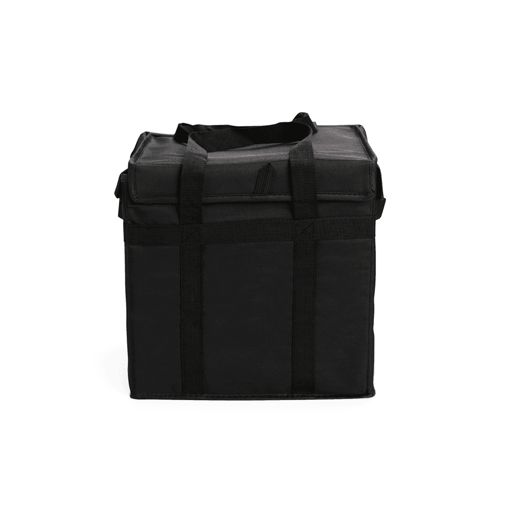 Bolsa térmica confeccionada em Oxford impermeável, fechamento em velcro e capacidade máxima de 31 litros. Conta com armação interna em placa de PVC e junção inferior em velcro, que facilita o transporte quando a bolsa não estiver em uso. Possui revestimento térmico interno em folha de alumínio e um par de alças de nylon para transporte.