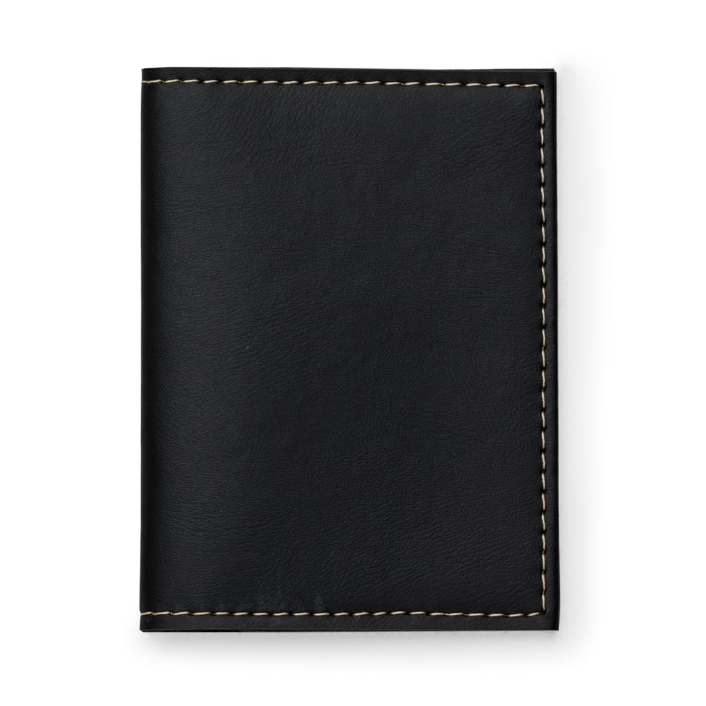 Porta-documento Bidins em couro sintético, capa frente e verso lisa, parte interna com bolso de visor plástico e três divisórias no próprio couro com bolso lateral.