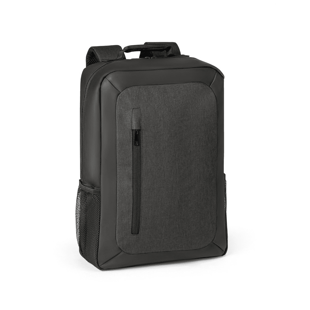 Mochila para notebook em 600D de alta densidade e 600D com revestimento resistente à água. Compartimento principal almofadado com divisória para notebook até 15.6''. Bolso frontal com zíper e dois bolsos laterais em tela mesh. Parte posterior almofadada, com sistema de apoio acolchoado para as costas e alças almofadadas. Capacidade até 10 L. 280 x 400 x 110 mm