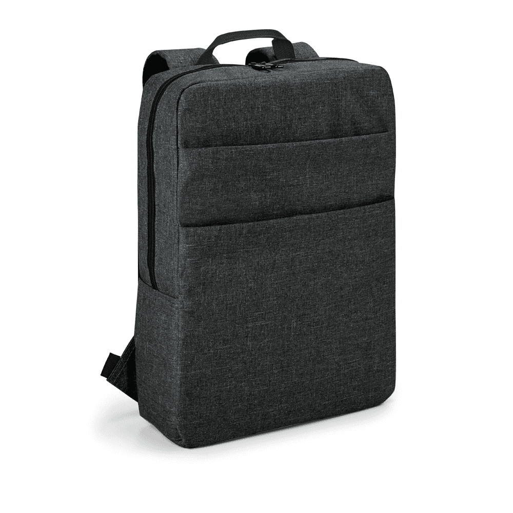 Mochila para notebook em 600D de alta densidade. Possui interior forrado e almofadado com um compartimento com divisória almofadada para notebook até 15.6'' e 2 bolsos frontais. Parte posterior e alças almofadadas. Capacidade até 10 L. 295 x 390 x 100 mm