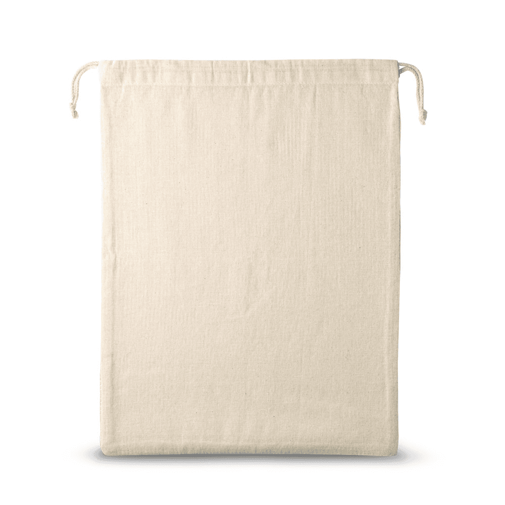 Sacola 100% algodão (120 g/m²) com malha 100% algodão na parte frontal (100 g/m²) e cordões em algodão para fechar. Sacola ideal para levar alimentos. 300 x 400 mm
