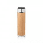 Garrafa em aço inox e bambu de parede dupla térmica, isolada a vácuo. Capacidade até 430 mL. A tampa contém um termômetro digital que permite saber, a qualquer momento, a temperatura da bebida. Inclusa pilha e infusor para chá. Certificação EU Food Grade. A cor e o resultado da impressão nos materiais naturais pode variar entre produtos. ø65 x 235 mm