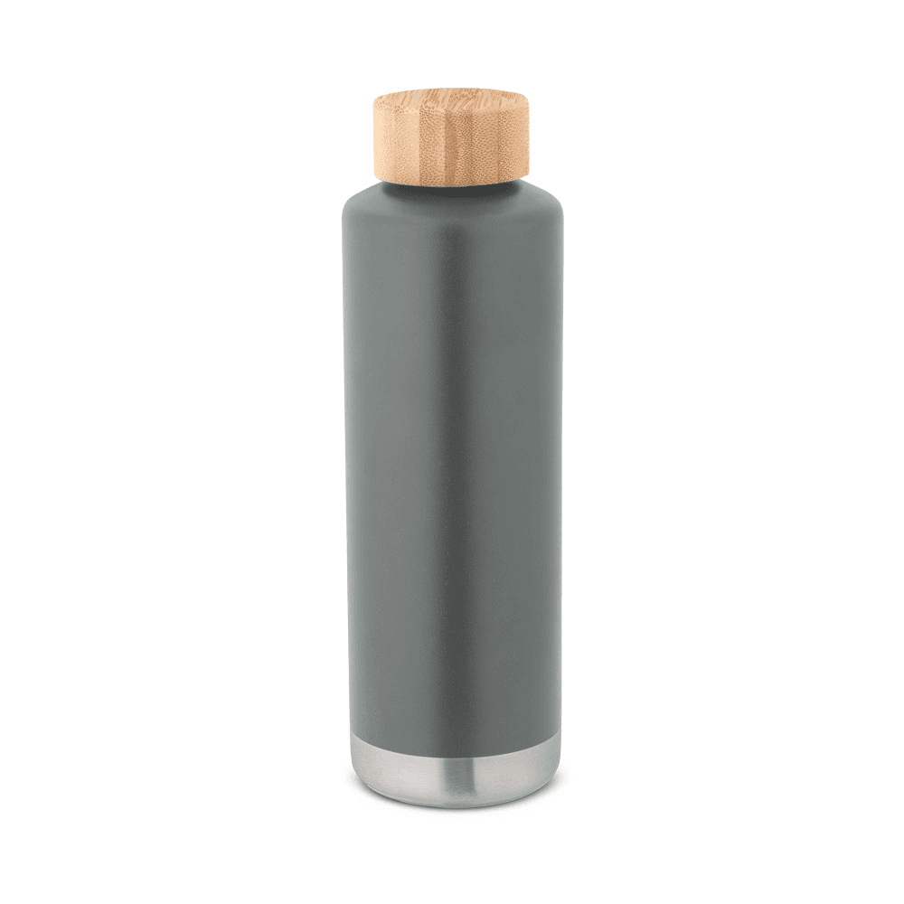 Garrafa em aço inox de parede dupla térmica, isolada a vácuo. Possui parede interna revestida de cobre e tampa em bambu com vedante de silicone para proteção extra. Capacidade até 640 mL. Parede com revestimento em pó que lhe confere mais durabilidade e resistência. Preserva as bebidas quentes por 16 h e frias por 48 h. Fornecido em caixa presente de papel kraft reciclado. Certificação EU Food Grade. A cor e o resultado da impressão nos materiais naturais pode variar entre produtos. ø72 x 233 mm