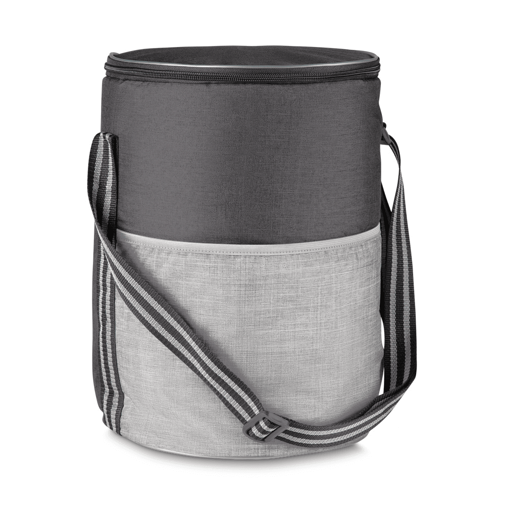 Bolsa térmica com capacidade de 26 litros. Fabricada em tecido nylon mescla 300D, possui bolso frontal e alça de ombro regulável. Parte interna soldada que pode reter liquidos.