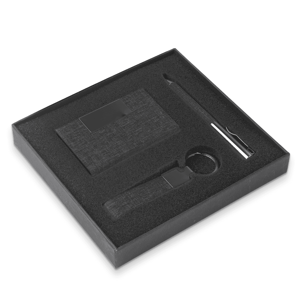 1 Chaveiro em metal com detalhe em RPET reciclável;