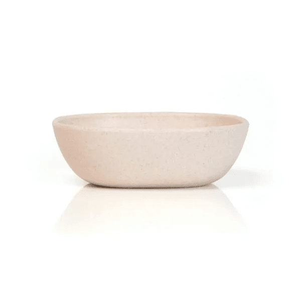 Conjunto para petiscos e patês em Bambu/Fibra de bambu. Acompanha dois potes em fibra de bambu, base e duas espátulas de 14cm em bambu.