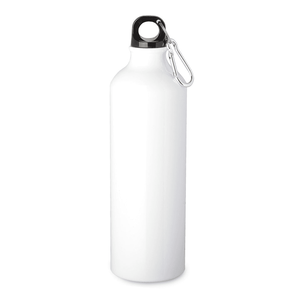 Garrafa em alumínio com capacidade de 750ml. Tampa de plástico rosqueável com mosquetão colorido. Pintura metálica.