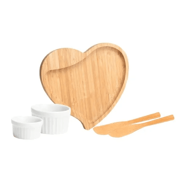 Kit Para Petisco Com Tábua Formato Coração - 5 Pçs KT-90043