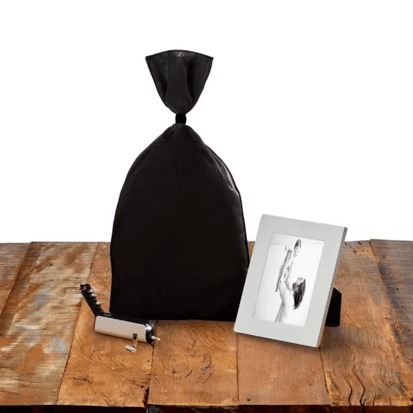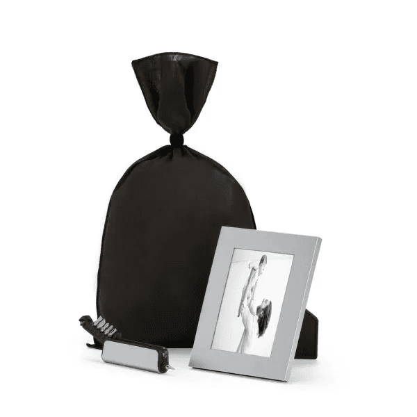 Composto por porta-retrato em alumínio fosco com vidro frontal, apoio em polipropileno preto e uma fina espuma no interior para acomodar melhor a foto. Conta também com conjunto de ferramenta em Polipropileno preto/prata.